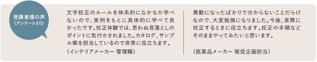 ●校正手順: 効率的かつ見落としのないチェックの進め方を習得します。