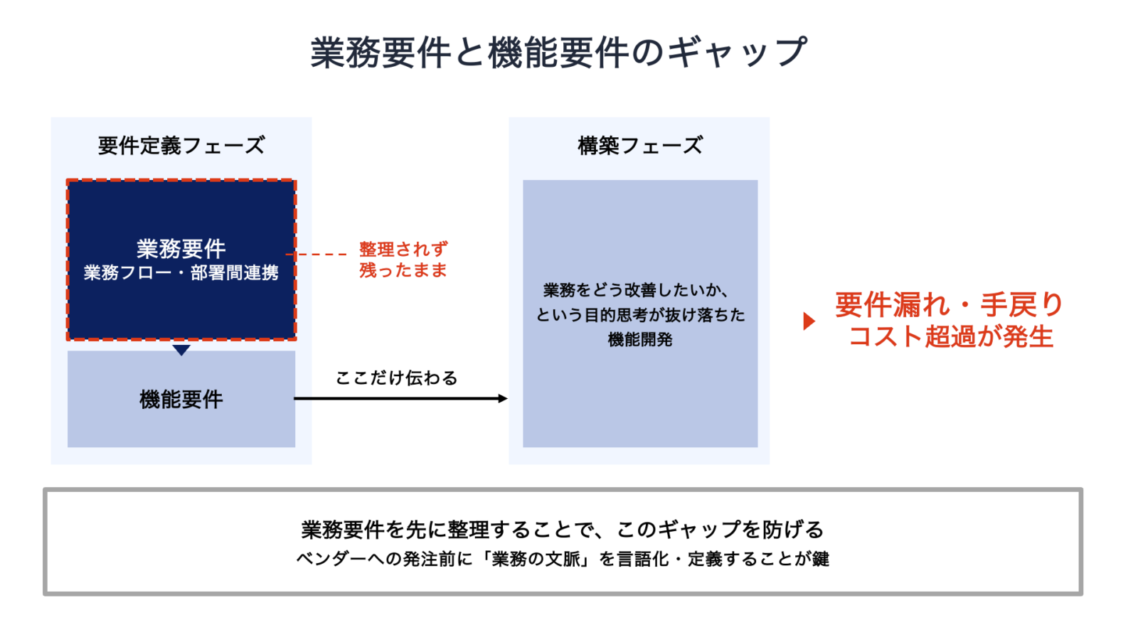 それは、業務要件が正しく整理されないまま、開発がスタートしてしまっていること。