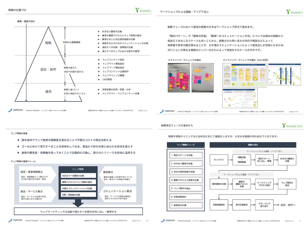 山形様 もちろん簡単ではなかったですが、ワークショップで意思決定に関係者が参加できたことで、前提が揃っていたのは大きかったですね。誰に向けて、何を伝えるべきかがクリアになっていたので、「じゃあ自分たちは何を出せばいいか」が分かりやすく、各部署にも指示がしやすくなりました。